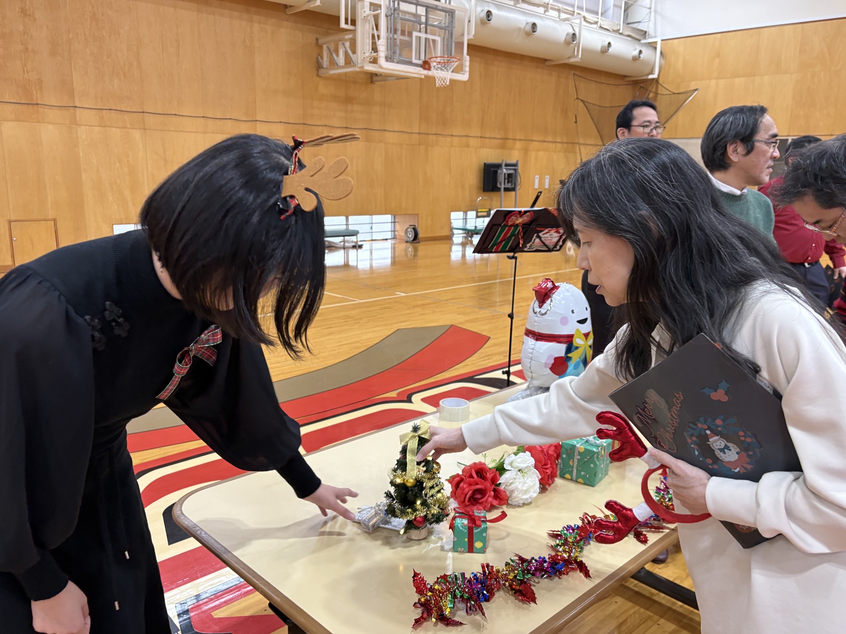 そのあとは、ふたたびクリスマスソングに戻り、「We wish you a merry Christmas」、「赤鼻のトナカイ」、最後におなじみの「ジングルベル」を歌い、鈴やクリスマスカラーの布で歌を演出しました。