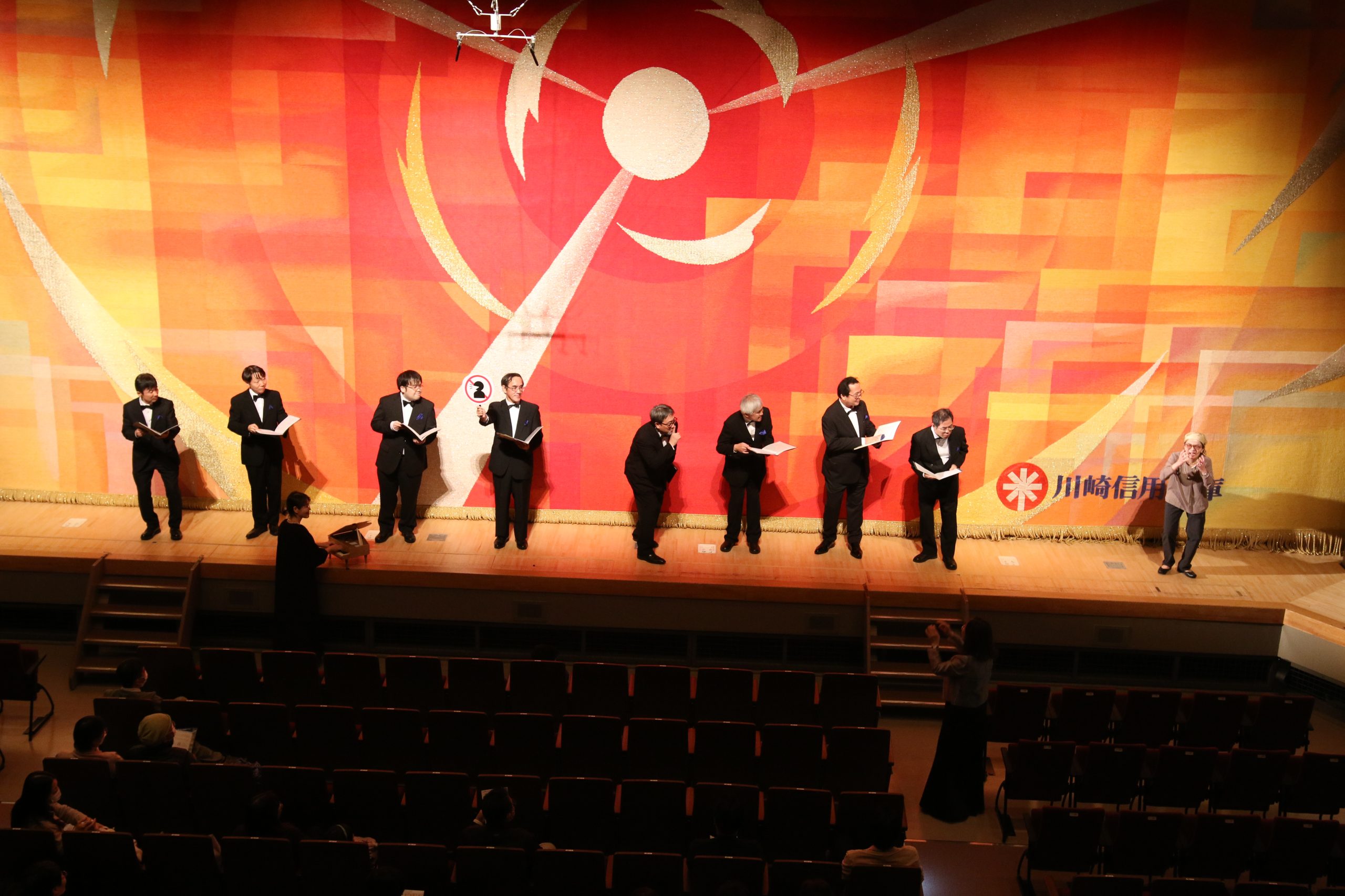 まずは男声合唱団+演者(?)で「演奏会のお約束」を披露しました。